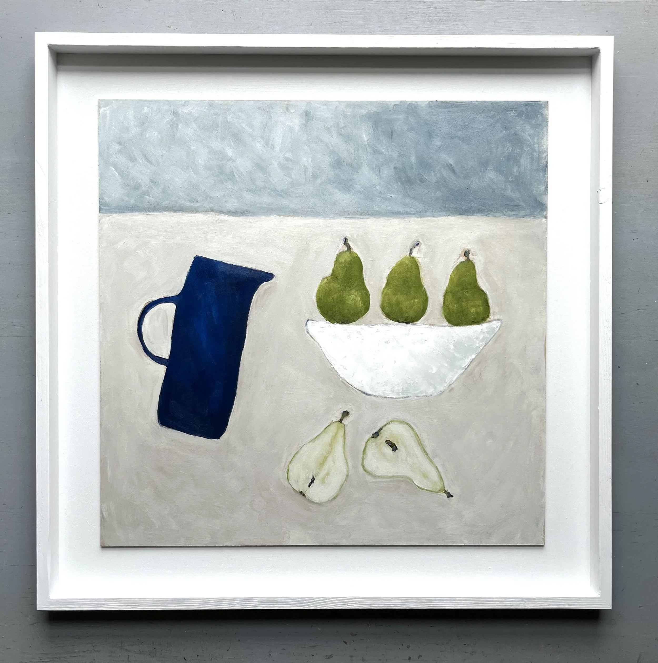 FIRST OF THE GARDEN PEARS Oil on wood. 50 x 50cm framed. Hand made wooden frame.